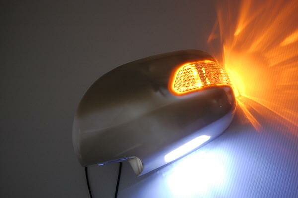 ※キーレスがルームランプに連動していない車種はキーレス連動キット(1,000円+税)追加購入可能 ウインカー部分は、LED片側8個オレンジ色で後方からもLEDの点灯が確認できます。